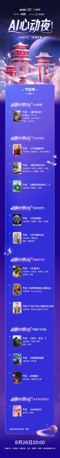 心动之旅,即将开启。8月28日晚8点,上快手搜索央视网“AI心动夜”,共同见证跨越千年时空的爱情传奇,一起感受科技与文化的精彩碰撞。